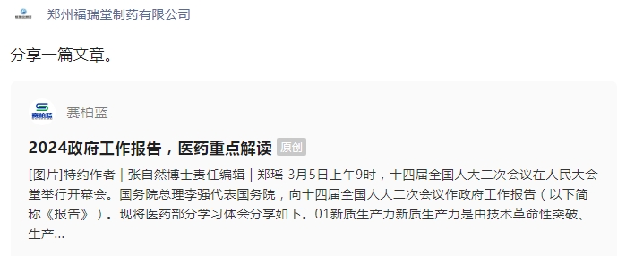 分享一篇文章——2024政府工作報告,醫藥重點解讀