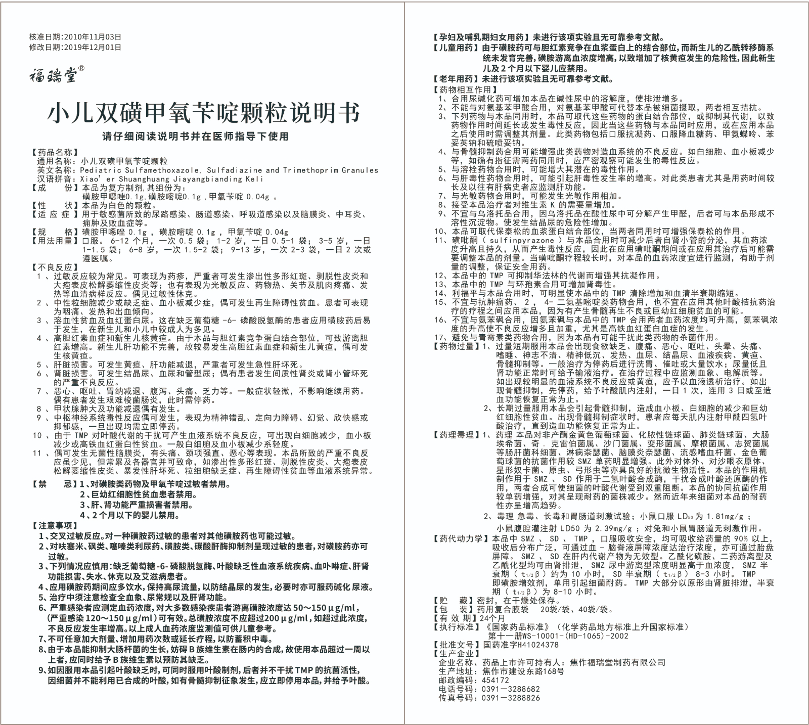 英文名稱:Pediatric Sulfamethoxazole, Sulfadiazine and Trimethoprim Granules