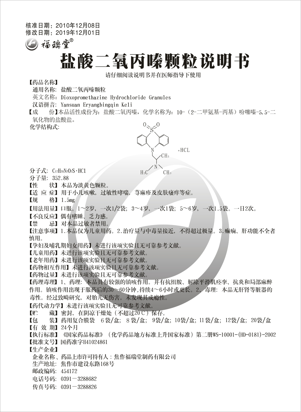 英文名稱:Dioxopromethazine Hydrochloride Granules