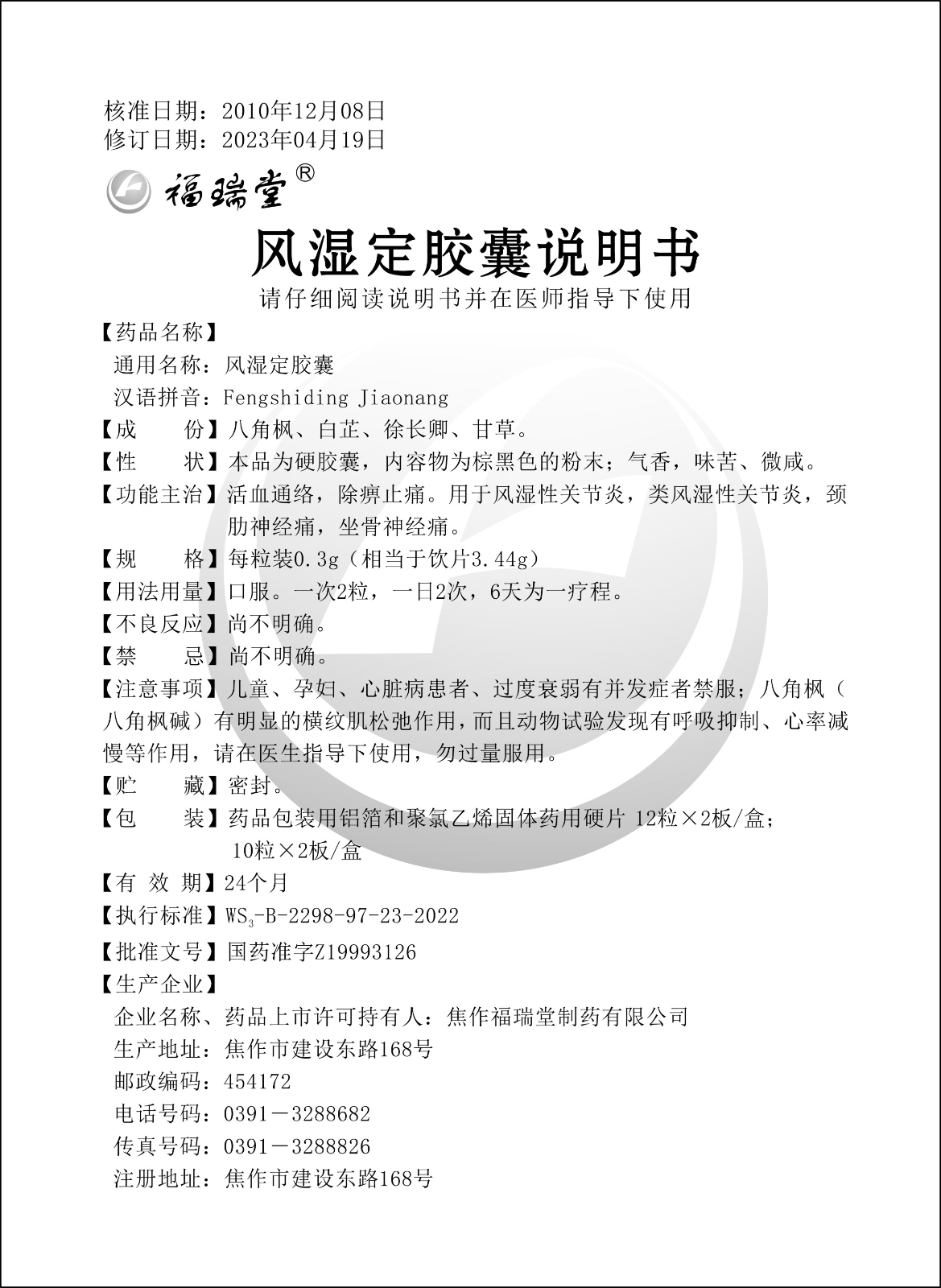 風濕定膠囊說明書