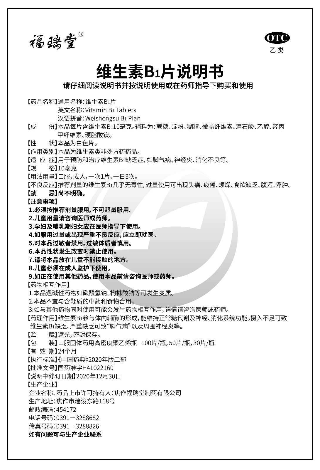 功能主治:用於預防和治療維生素B1缺乏症,如腳氣病、神經炎、消化不良等。