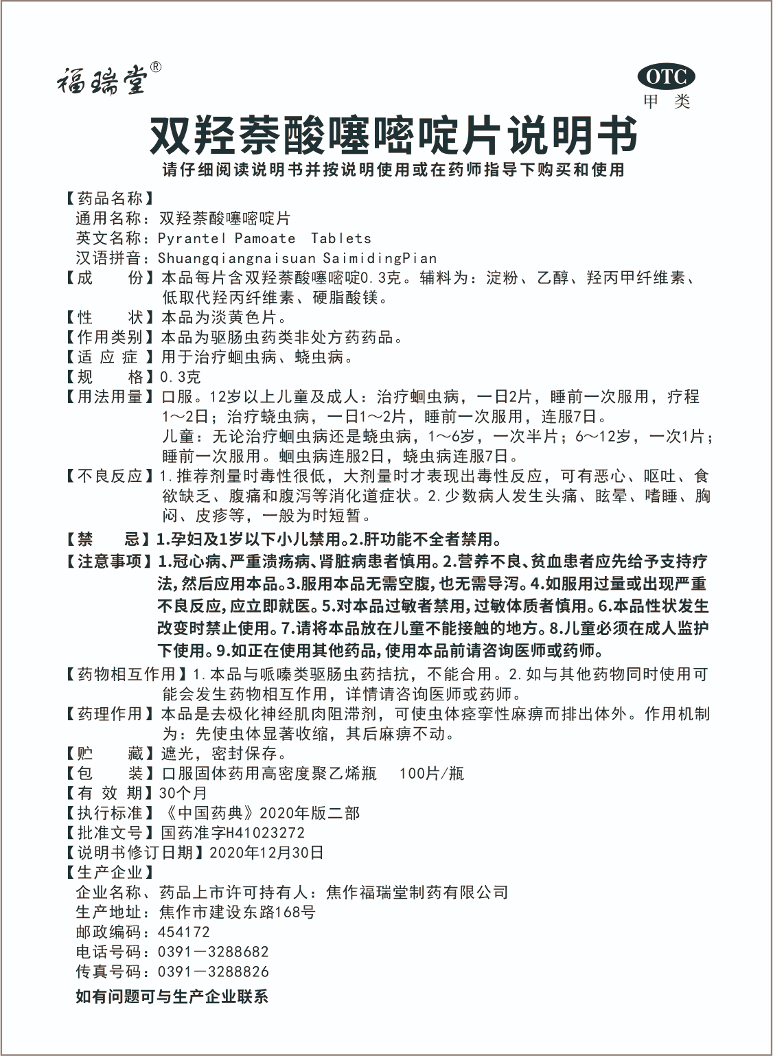 通用名稱:雙羥萘酸噻嘧啶片