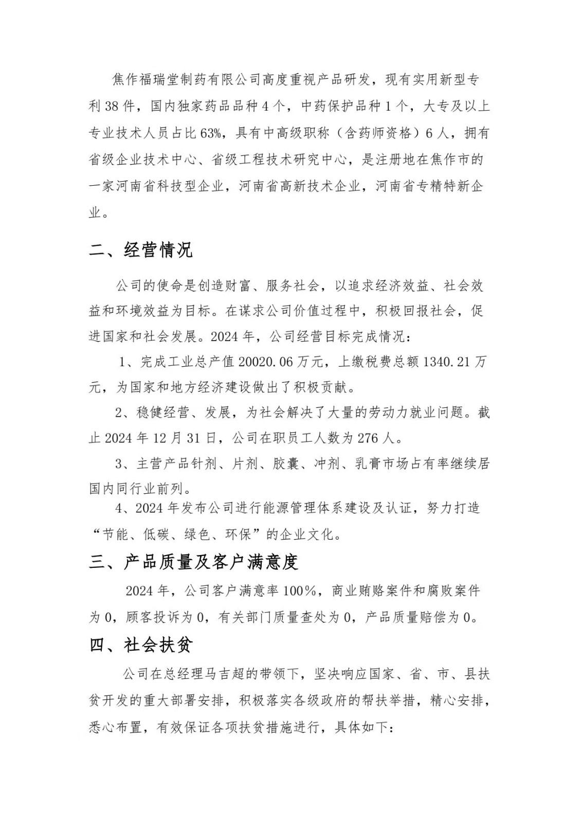焦作福瑞堂2024年度社會責任報告