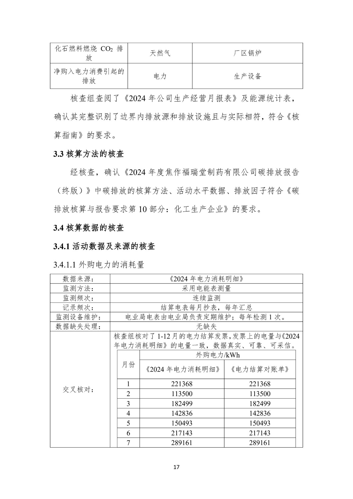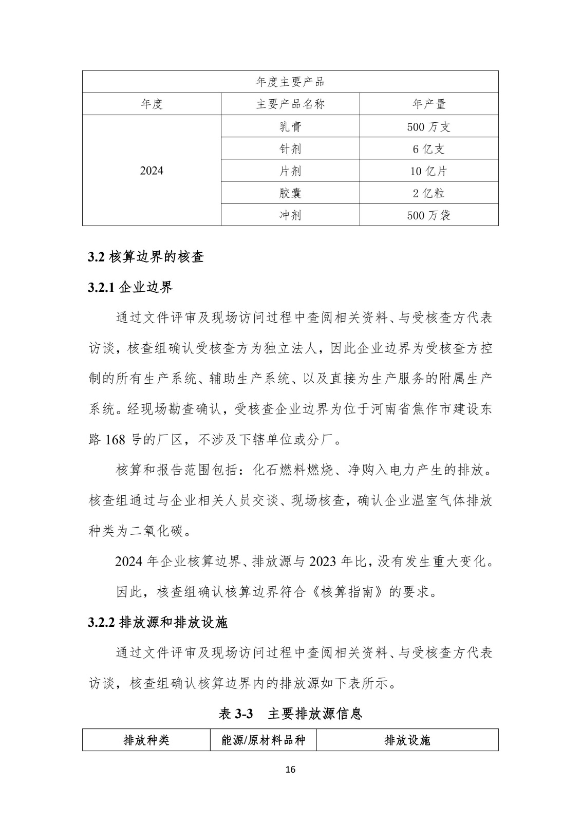 焦作福瑞堂製藥2024 年度溫室氣體排放核查報告