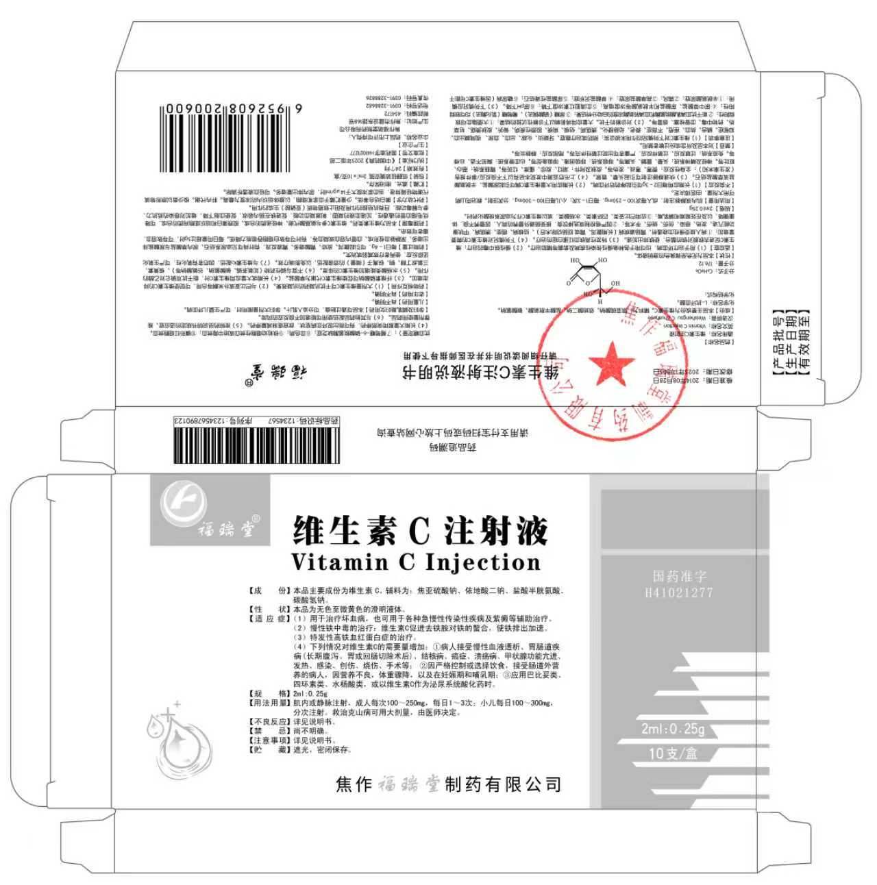 1.維生素C注射液(批準文號:國藥準字H41021277,規格:2ml:0.25g)