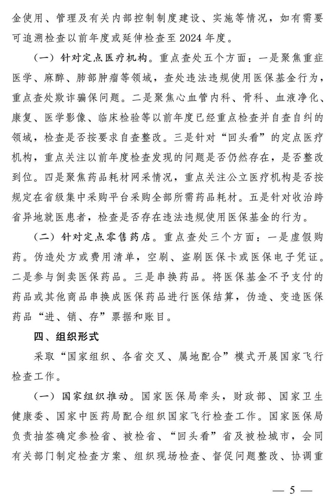 4月28日,國家醫保局、財政部、國家衛健委、國家中醫藥局聯合發布《關於開展2024年醫療保障基金飛行檢查工作的通知》,覆蓋全國所有省(自治區、直轄市及新疆生產建設兵團)以及各類醫保基金使用主體的國家飛行檢查正式開始。