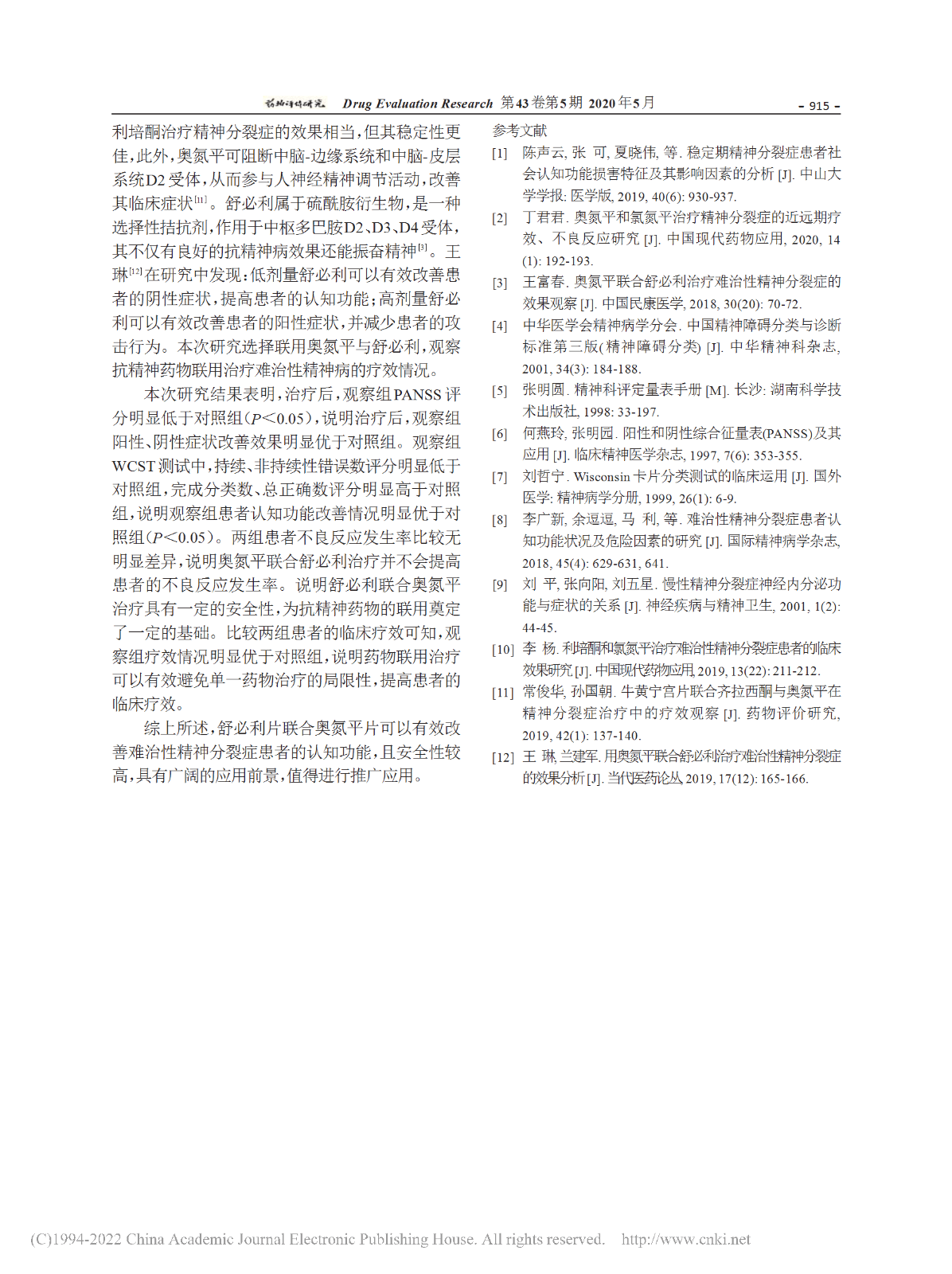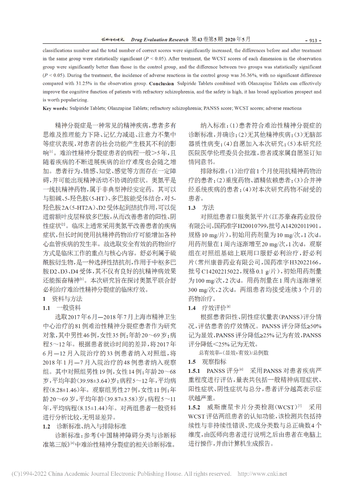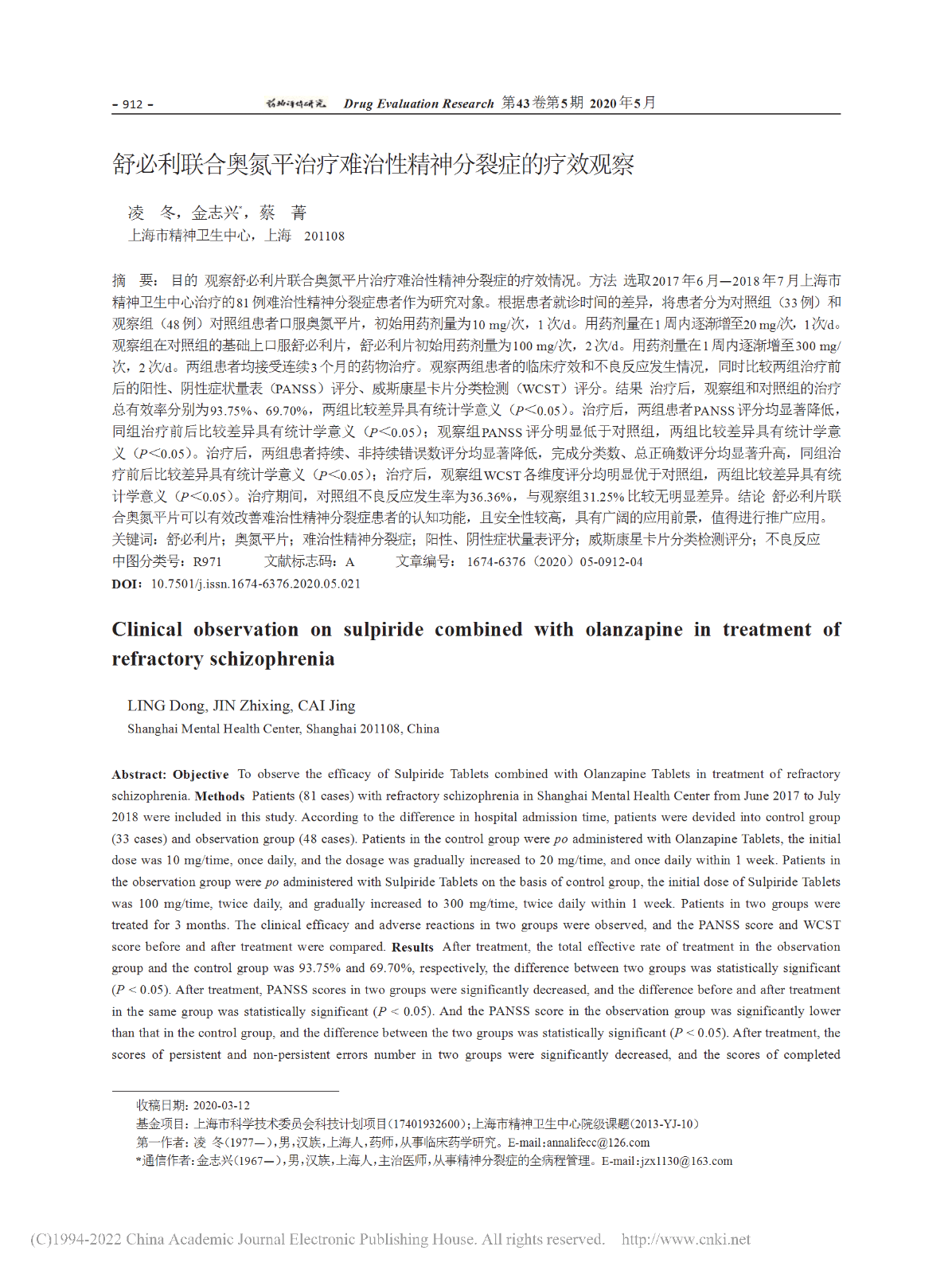 舒必利聯合奧氮平治療難治性精神分裂症的療效觀察_淩冬
