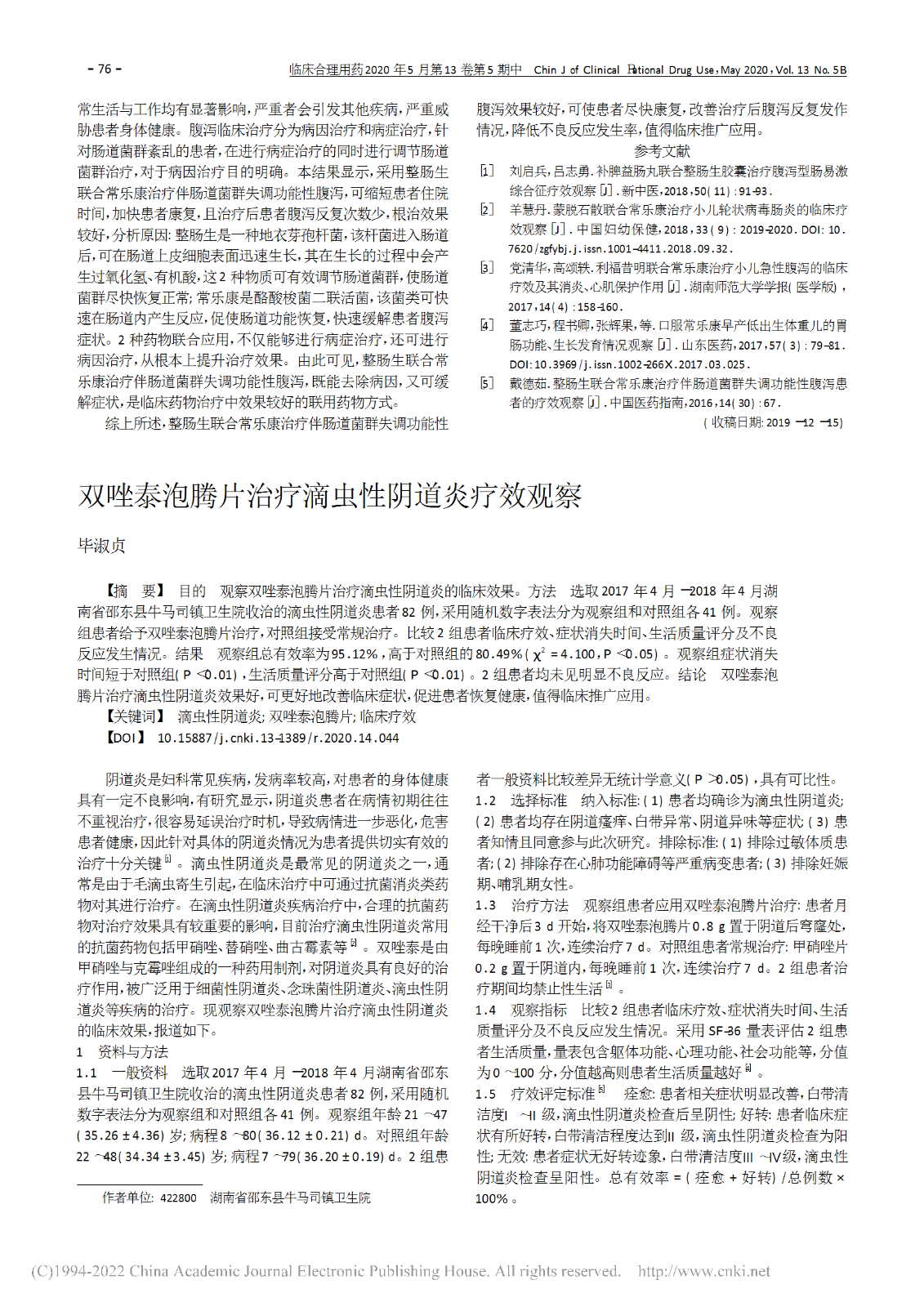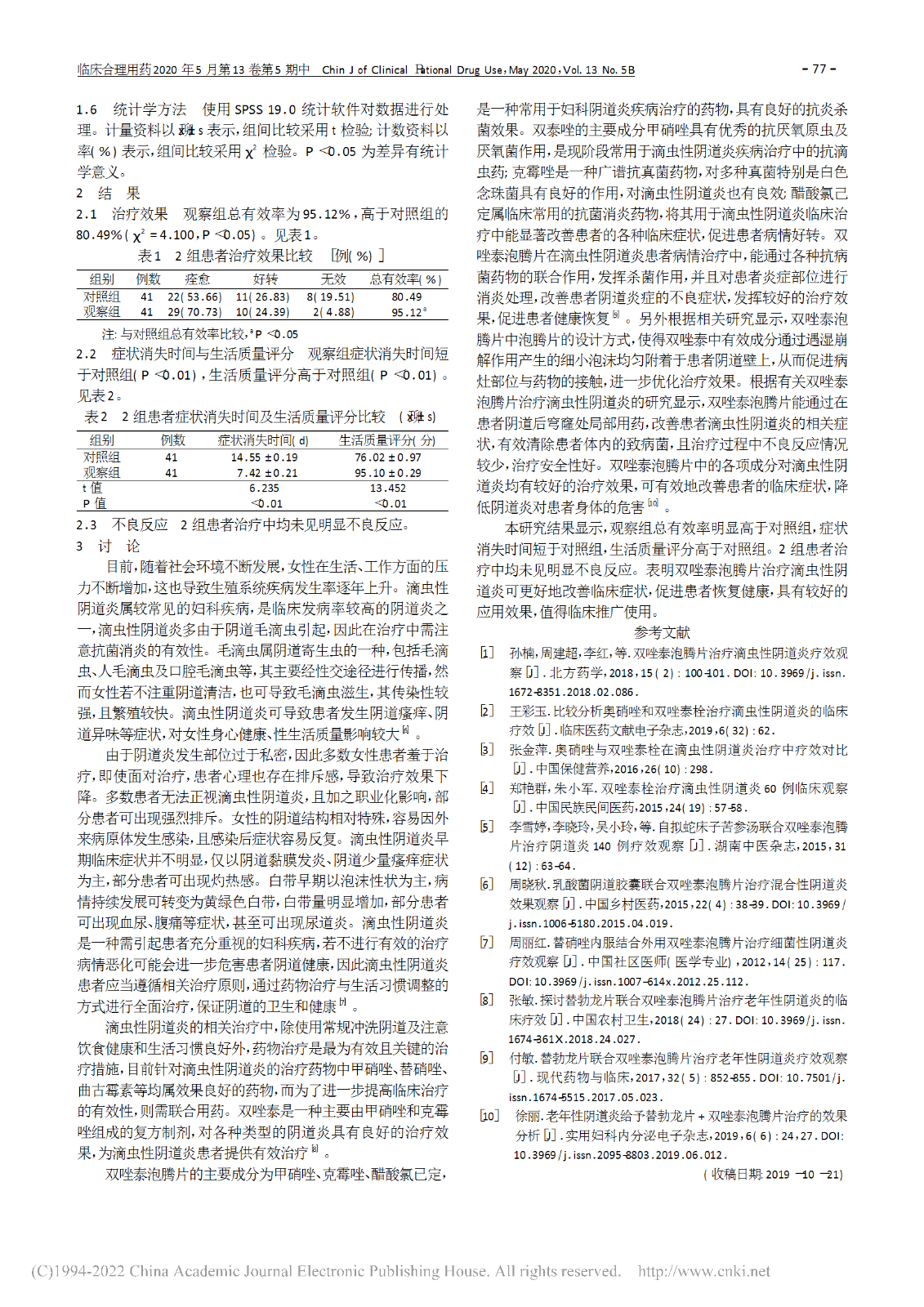雙唑泰泡騰片治療滴蟲性陰道炎療效觀察_畢淑貞