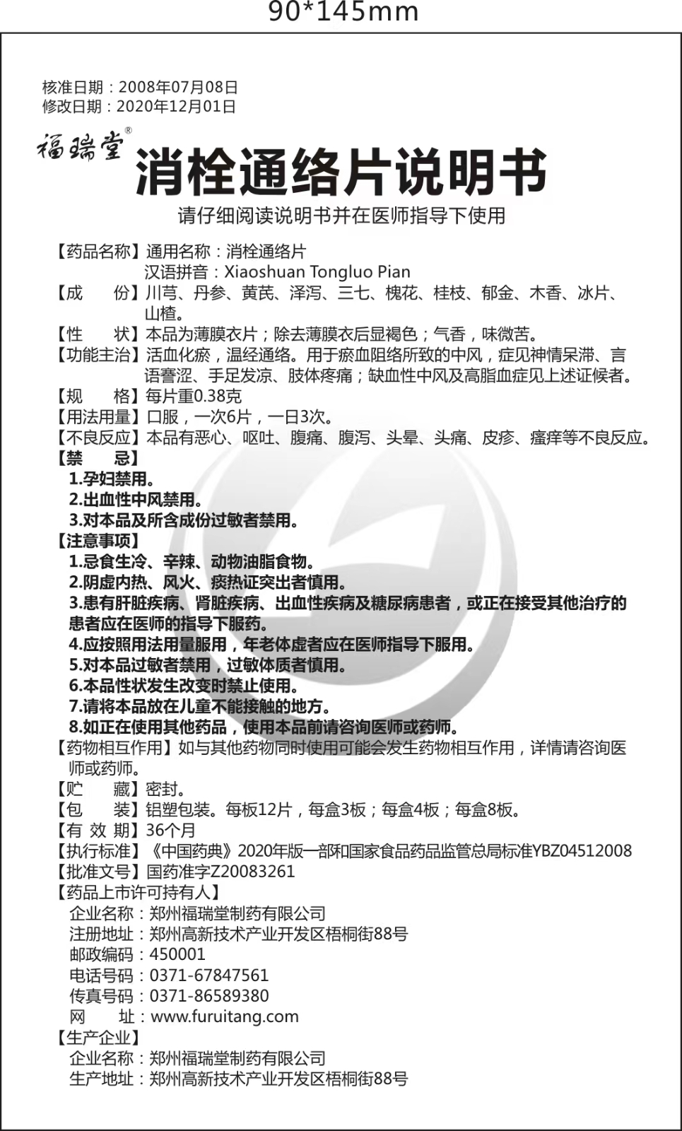 消栓通絡片說明書