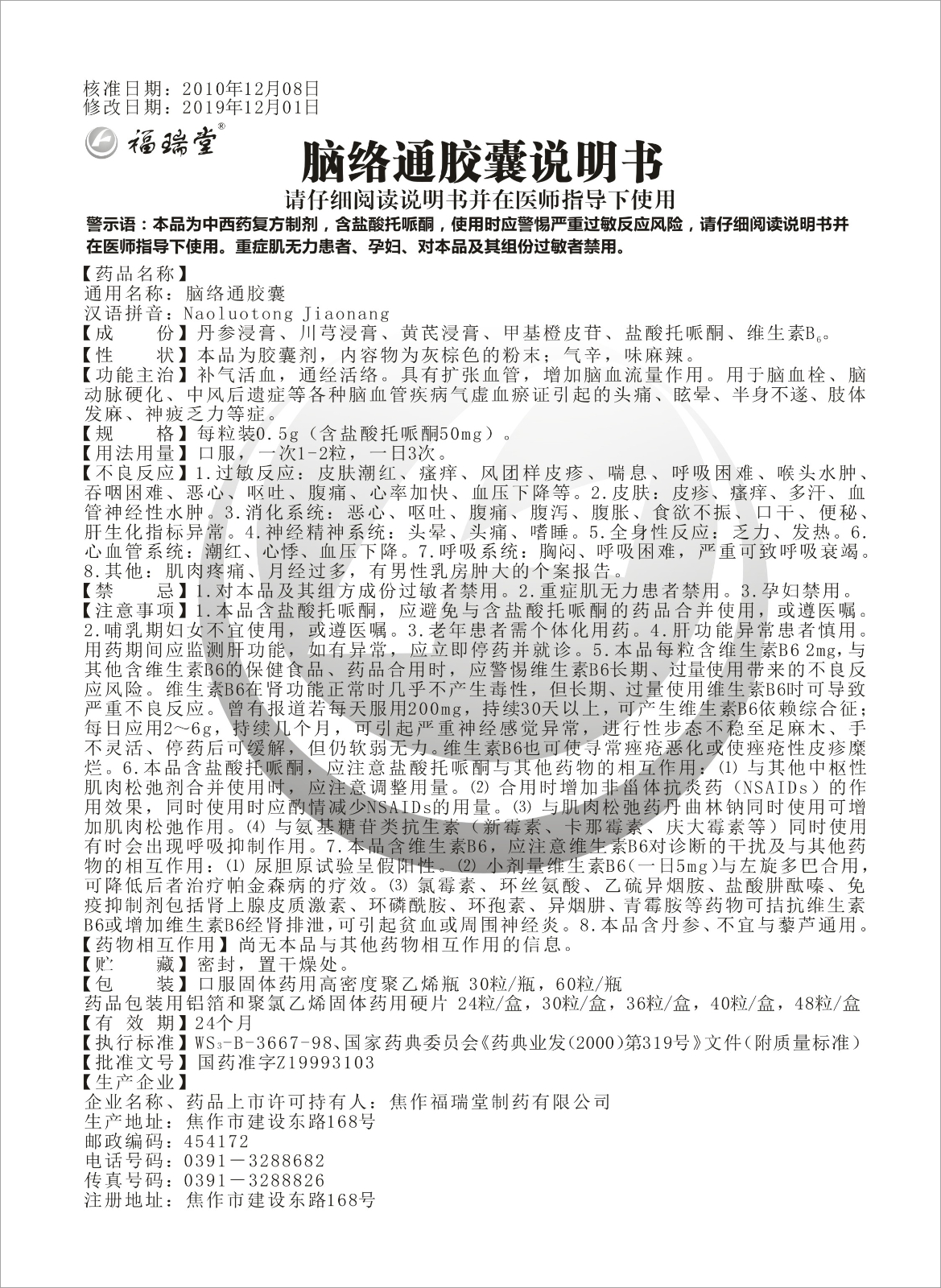 通用名稱:腦絡通膠囊
