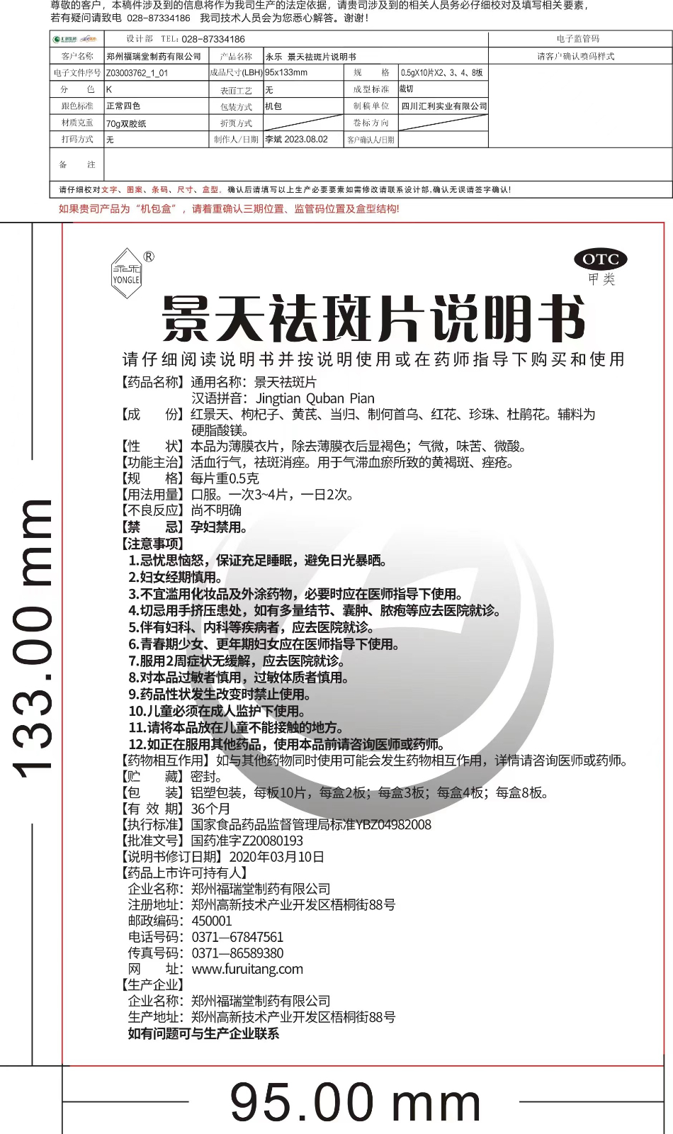 景天祛斑片說明書