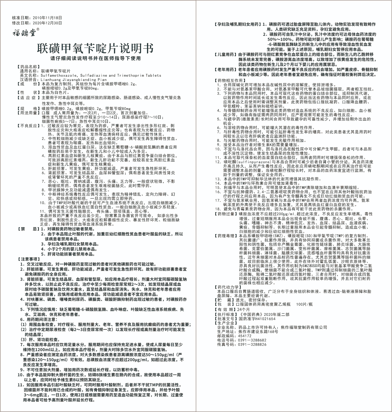 規格:磺胺甲噁唑0.2g,磺胺嘧啶0.2g,甲氧苄啶80mg