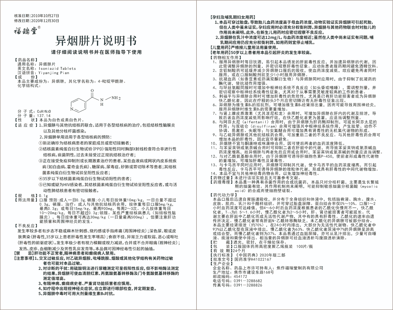 功能主治:1、異煙肼與其他抗結核藥聯合,適用於各型結核病的治療,包括結核性腦膜炎以及其他分枝杆菌感染。 2、異煙肼單用適用於各型結核病的預防:①新近確珍為結核病患者的家庭成員或密切接觸者;②結核菌素純蛋白衍生物試驗(PPD)強陽性同時胸部X射線檢查符合非進行性結核病,痰菌陰性,過去未接受過正規抗結核治療者;③正在接受免疫抑製劑或長期激素治療的患者,某些血液病或網狀內皮係統疾病(如白血病、霍奇金氏病)、糖尿病、尿毒症、矽肺或胃切除術等患者;其結核菌素純蛋白衍生物試驗呈陽性反應者;④35歲以下結核菌素純蛋白衍