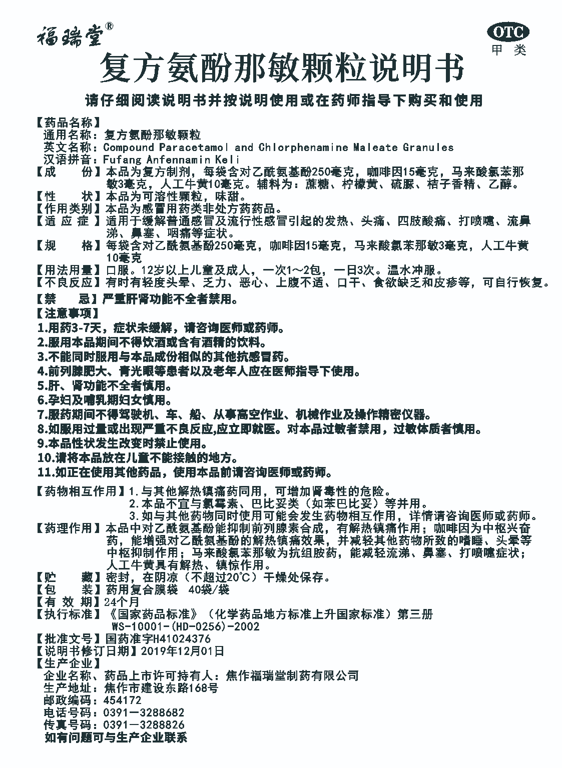 規格:每袋含對乙酰氨基酚250毫克,咖啡因15毫克,馬來酸氯苯那敏3毫克,人工牛黃10毫克