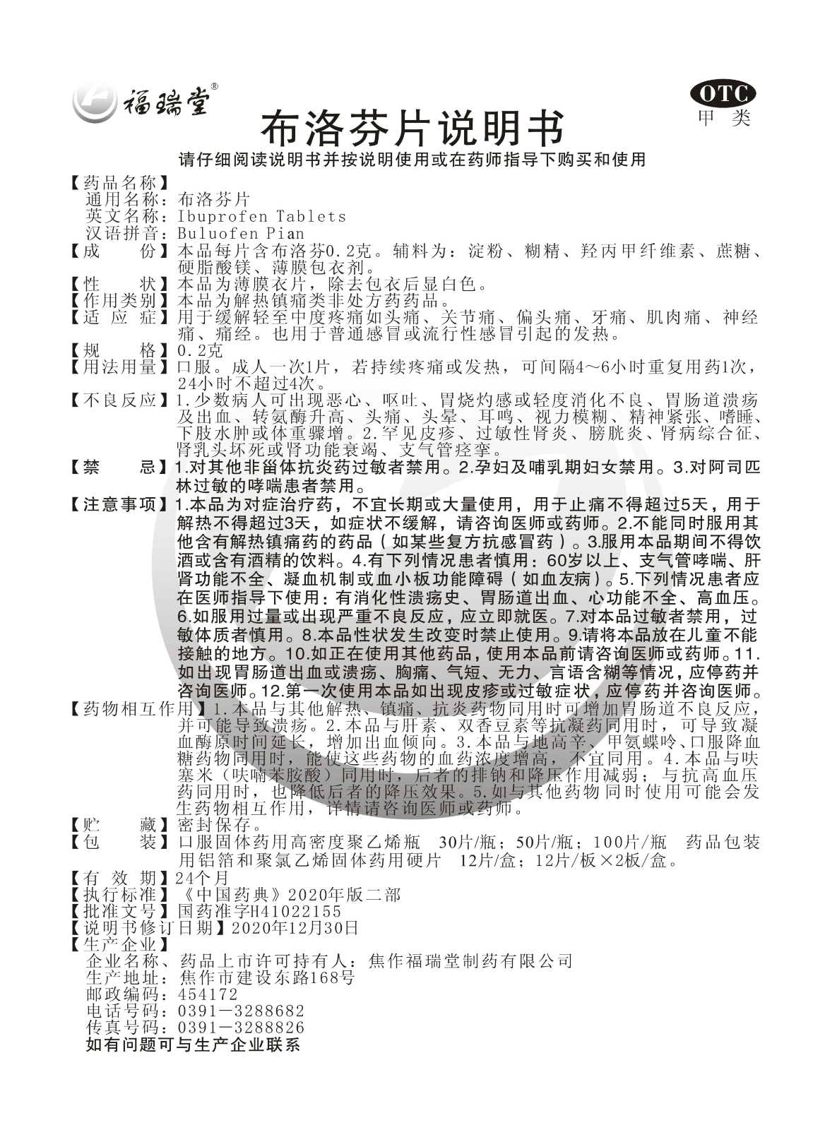 布洛芬片說明書