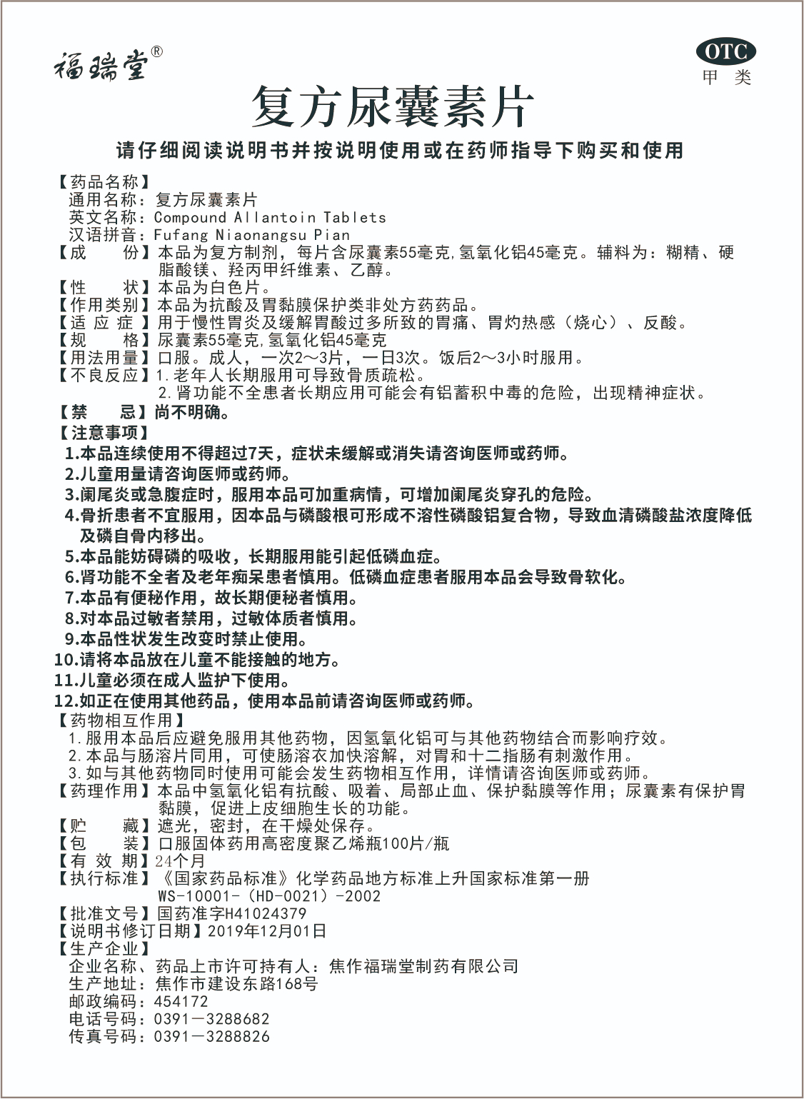 規格:尿囊素55毫克,氫氧化鋁45毫克