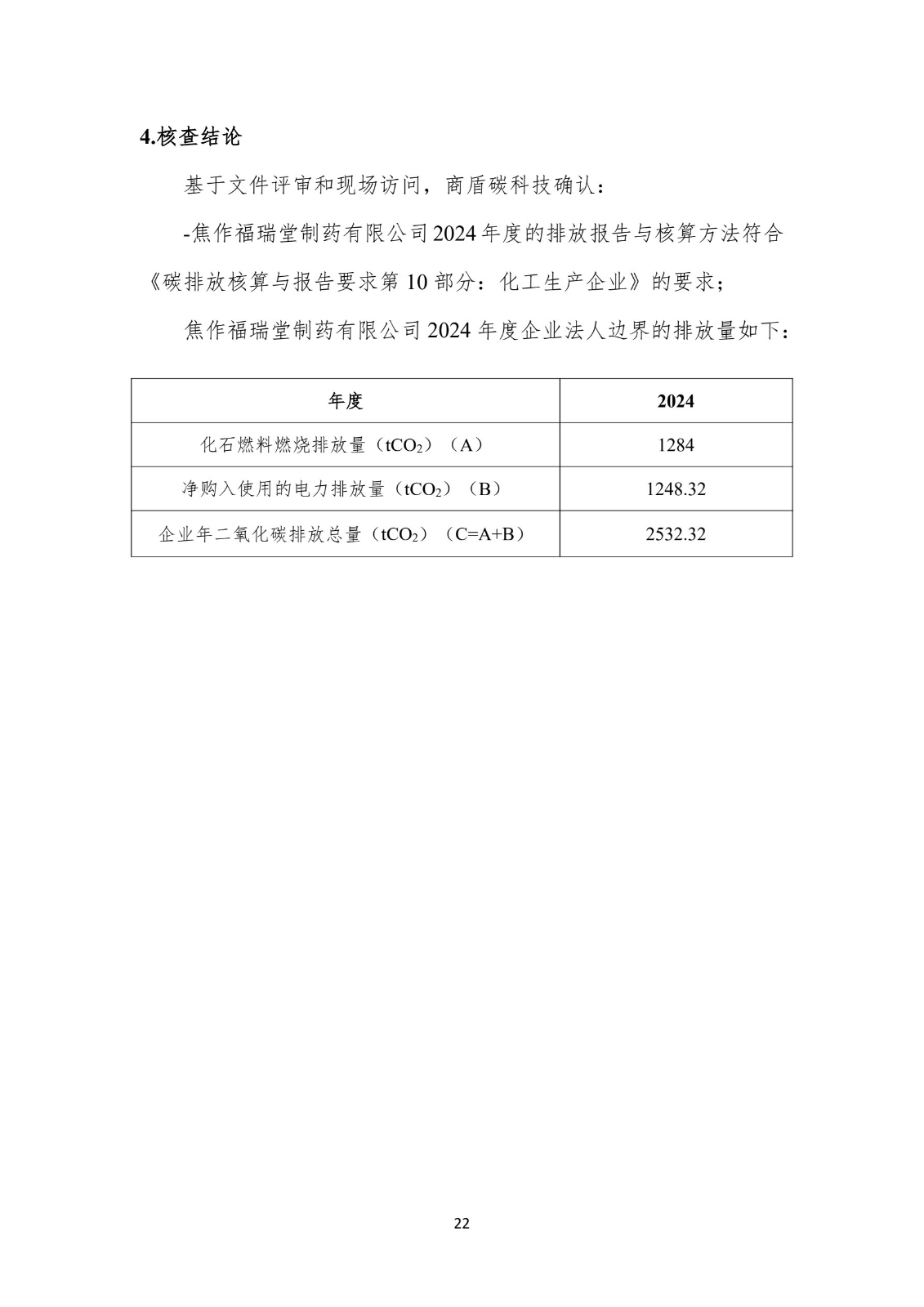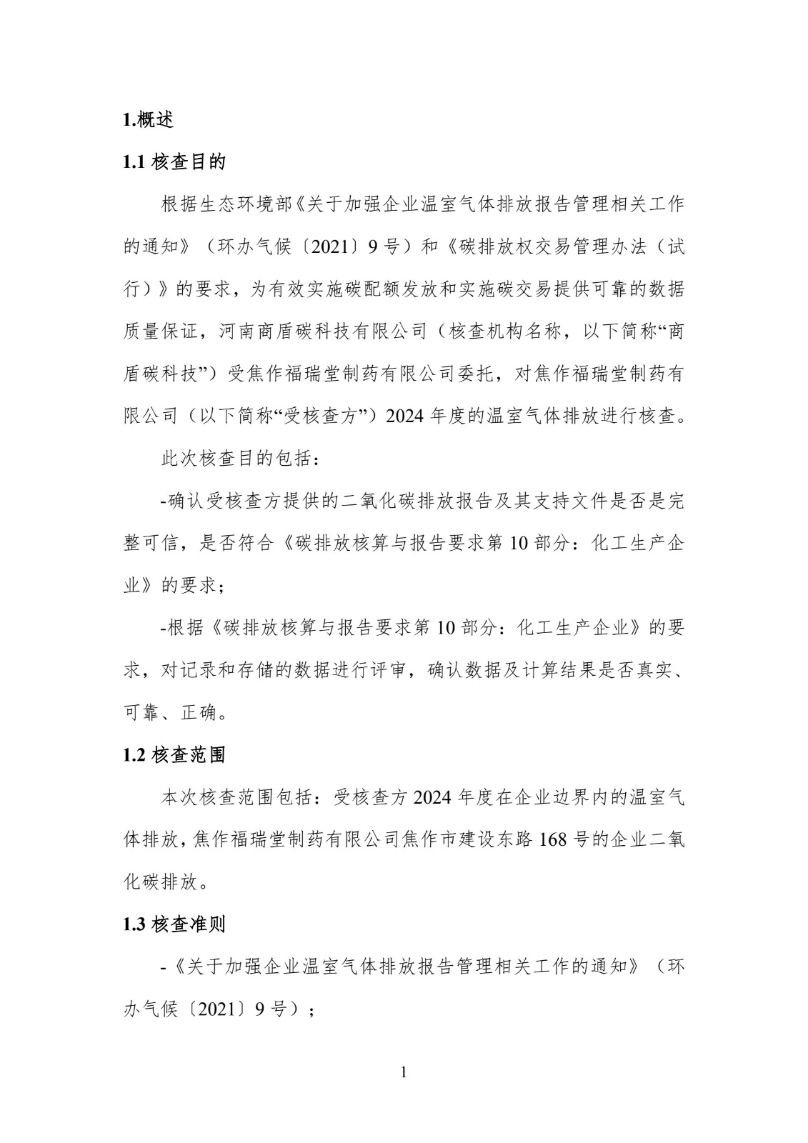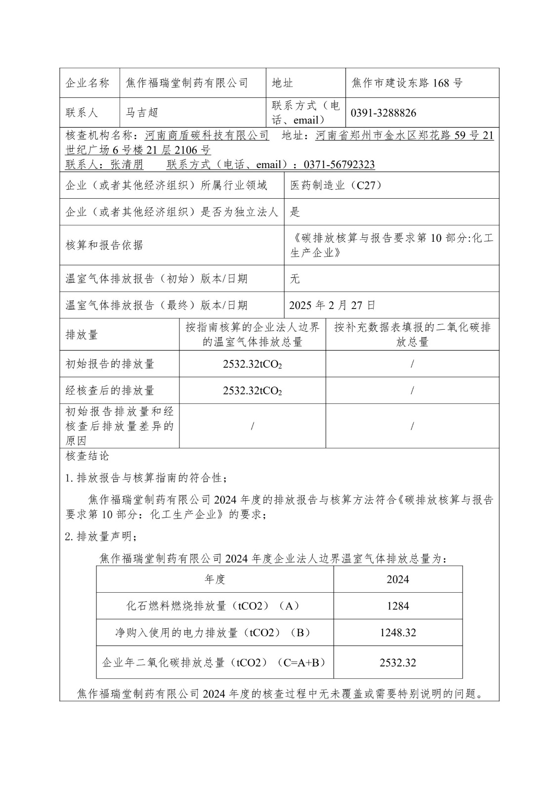 焦作福瑞堂製藥2024 年度溫室氣體排放核查報告