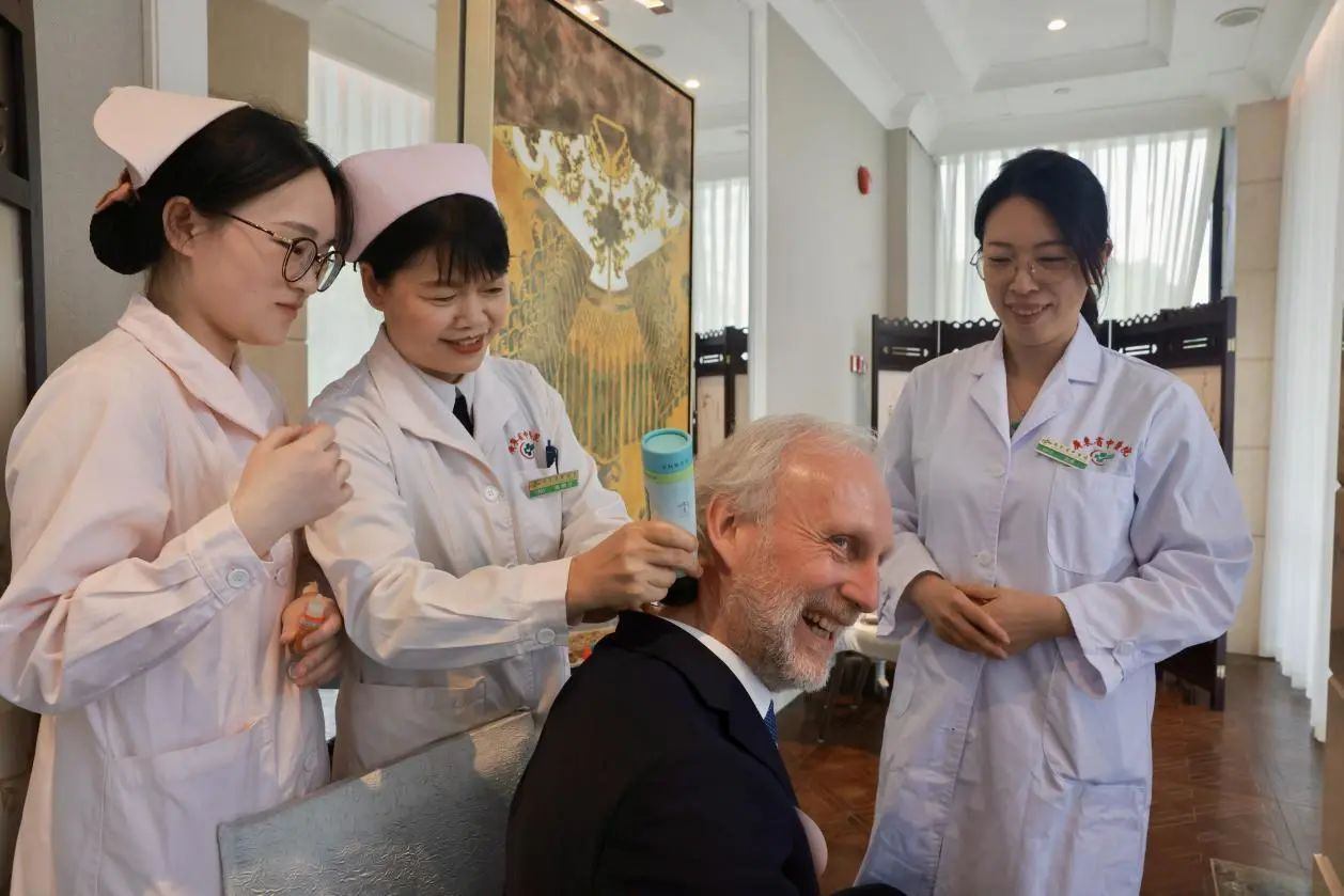 “guangzhoushiyigewushidechengshi,woduizheligaozhiliangdeyiliaofuwuyinxiangshenke。zhelijiangzuiqianyandexiandaiyixueyuchuantongyixueronghe,zhezhonggaoshuipingdezuhefangshilingrenyinxiangshenke。bencihezuoweishuangfanggongtongkaizhancaoyaozhiliao、科學研究、中西醫結合等多方麵的係統性合作搭建了橋梁。”德國埃森米特醫院整合醫學部主任馬克·沃納接受采訪時表示,“德國也有中醫診所,也有針灸、刮(gua)痧(sha)和(he)中(zhong)草(cao)藥(yao),我(wo)們(men)已(yi)經(jing)進(jin)行(xing)了(le)多(duo)項(xiang)相(xiang)關(guan)研(yan)究(jiu)。我(wo)認(ren)為(wei)我(wo)們(men)做(zuo)的(de)事(shi)情(qing),是(shi)回(hui)到(dao)傳(chuan)統(tong)醫(yi)學(xue)的(de)根(gen)源(yuan),並(bing)在(zai)某(mou)種(zhong)程(cheng)度(du)上(shang)將(jiang)它(ta)與(yu)現(xian)代(dai)醫(yi)學(xue)體(ti)係(xi)進(jin)行(xing)融(rong)合(he)。”馬克·沃納說,“此次合作成功整合了高水平的醫學體係,通過雙向交流互相學習,共同科研,我認為這是十分前哨的做法。”