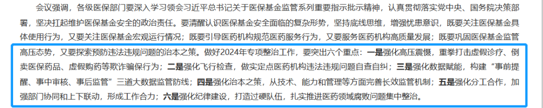進入2024年,從醫保基金監管在醫保局係列工作會議中被高頻點名的信號來看,2024年無疑將是醫保基金監管的大年。