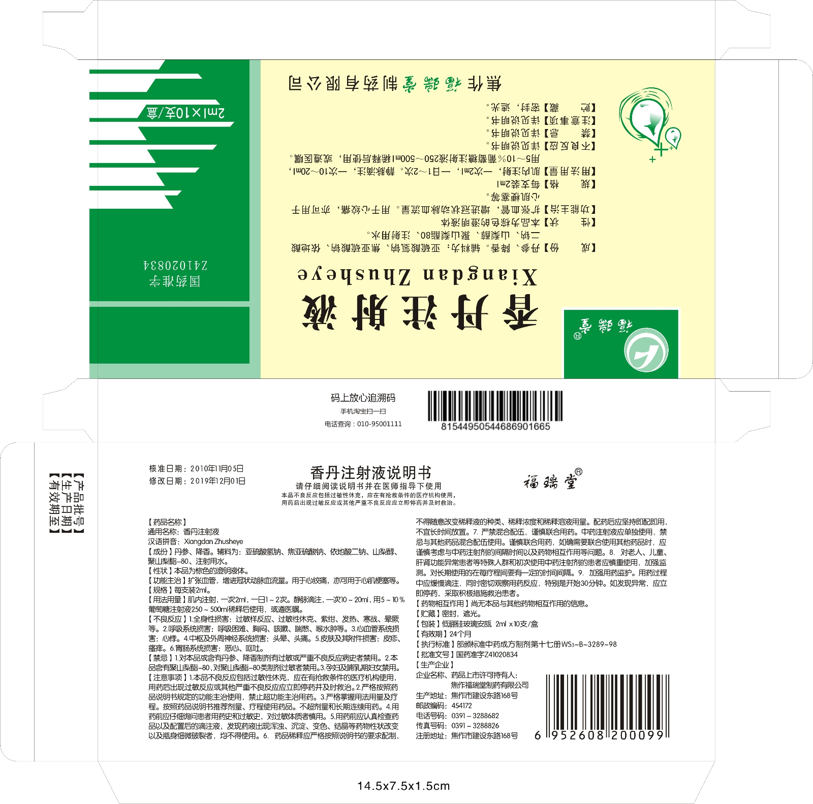 香丹注射液2ml說明書