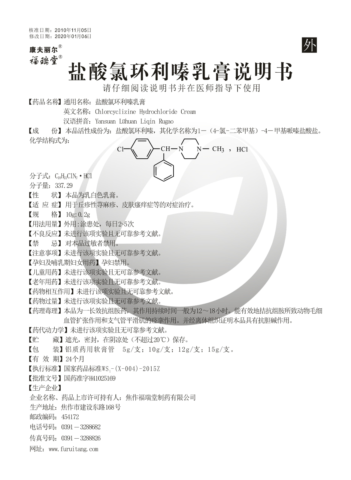 鹽酸氯環利嗪乳膏說明書